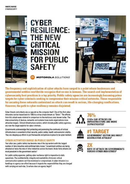 Download our new white paper to learn how you can enhance your cyber resiliency - Cyber Resilience - The New Critical Mission for Public Safety