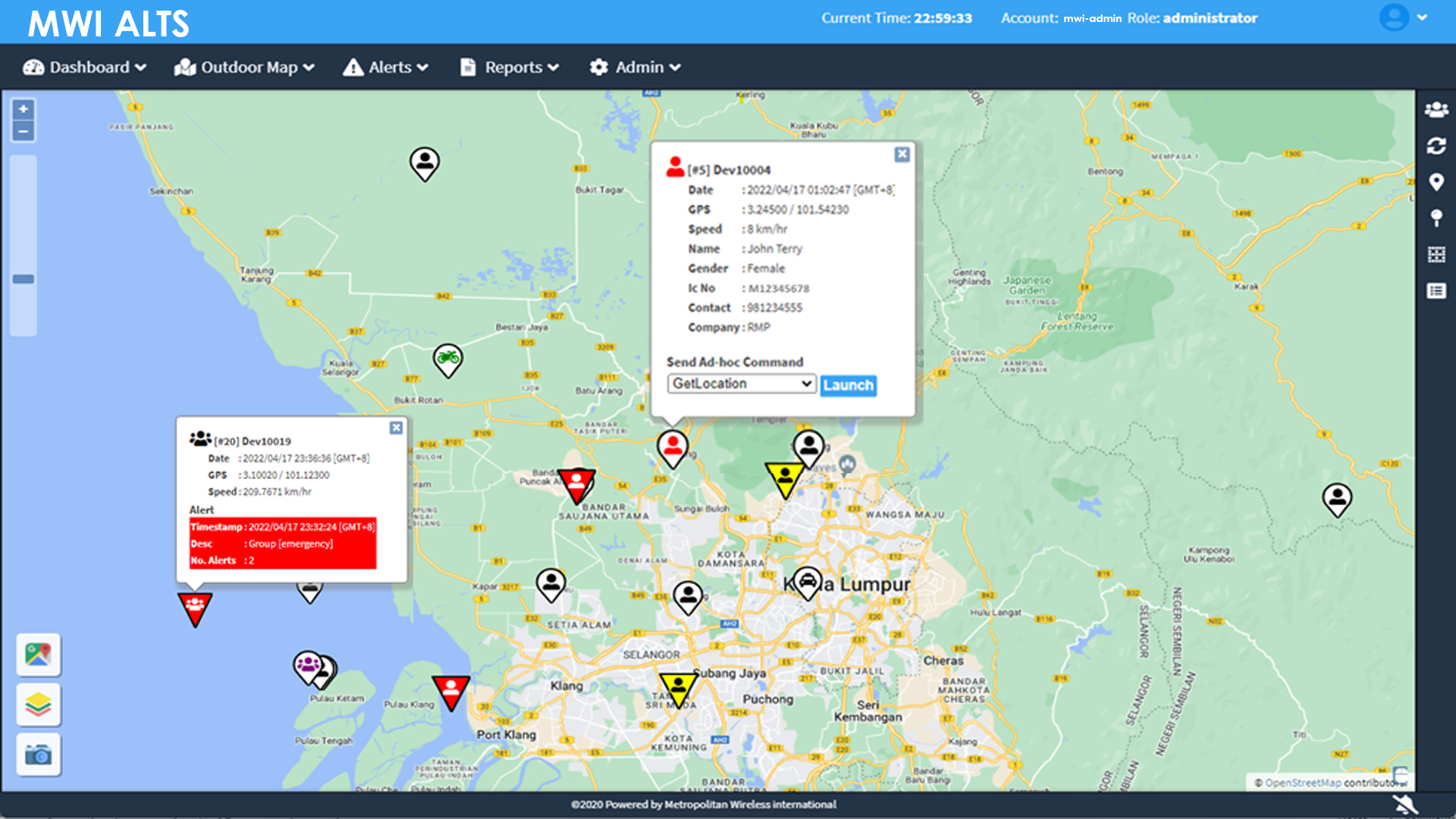 MWI’s Automatic Location Tracking System (ALTS) solution is based on GPS technology to track vehicles, personnel or any asset that has an in-built GPS receiver and has the means to communicate its position to a backend system. The solution is feature rich and highly scalable.  Features a light-weight web based scalable solution that can be deployed on the intranet or internet environment to track hundreds or thousands of devices.  The software provides a map-based view to display the real-time tracks of a single device or a group of devices as defined by the customer.  ALTS system has been successfully deployed on several DIMETRA™ & ASTRO infrastructures in the Asian region. It can support GPS updates from TETRA / ASTRO radios, LEX and other Android™ based phones.