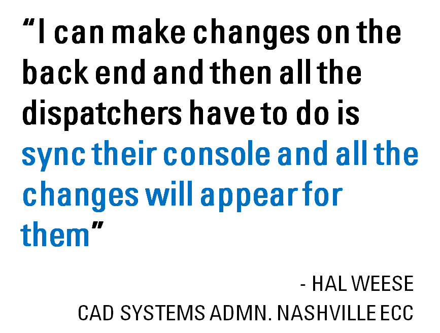 Weese from Nashville'ss IT Department appreciates new enhancements that allow him to make small custom updates. Also, implementing these custom features agency wide by making universal changes to the system is easy. In a busy department like Nashville, this is a time-saver for the IT department and the dispatchers get to working with the most up-to-date features possible.