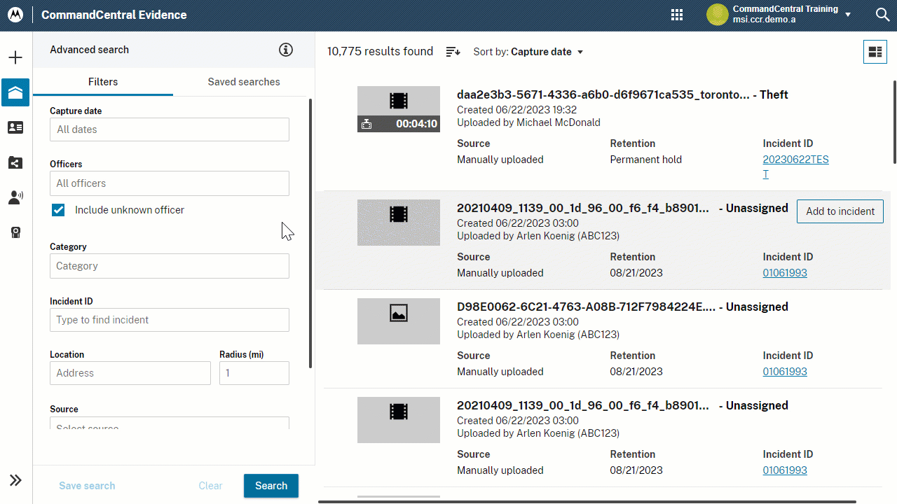 We’ve added the ability to make certain fields mandatory in the asset Details view, as indicated by an asterisk (*). Users will receive a warning if they try to exit the evidence details view without filling in these mandatory fields. You can configure mandatory asset metadata settings through the CommandCentral Evidence Settings page in Admin 2.0. To configure mandatory fields: