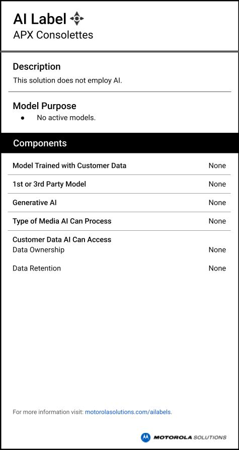 APX Consolettes AI label. View label