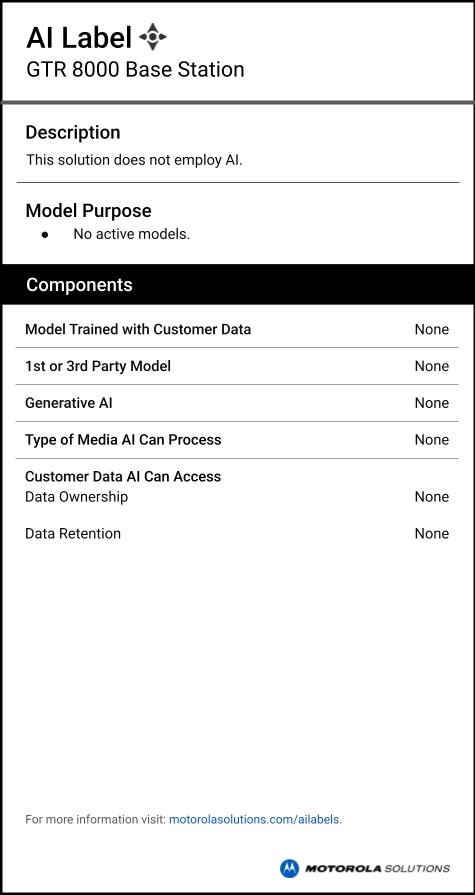 AI labels provide information on if and how GTR 8000 leverages artificial intelligence. Learn more