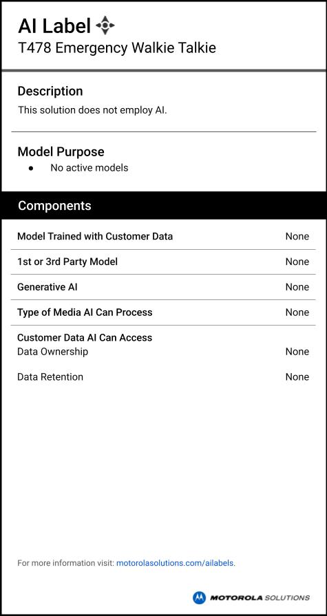 With the T478, you can easily access help in a dangerous situation. By pressing the radio’s dedicated emergency alert button, you can transmit a loud alert siren to nearby radios. The alert is followed by voice or sounds from your environment, so others can help you to safety.