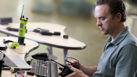 Intuitively designed with a familiar look and feel. With four RF bands and multi-mode system access, the APX 8000 knows no limits with interoperability. Loud or windy, whispers or yells, the Adaptive Audio Engine brings clarity to every conversation. With Wi-Fi access, quickly receive new codeplugs, firmware and software features to redeploy the radio fleet with ease as users keep talking without interruption.