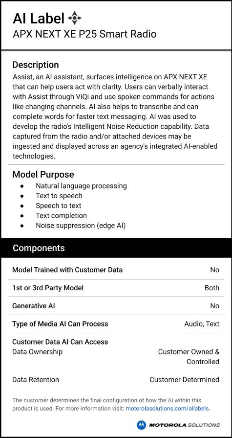APX NEXT XE application services bring new intelligence to the field. Additions such as ViQi®, SmartMessaging, SmartMapping, and SmartLocate quickly give firefighters and first responders vital information, from pin point location details to the sharing of important multimedia. And as part of our unique, end-to-end public safety ecosystem, APX NEXT XE data and operations are secure, and new capabilities can be seamlessly added as your needs evolve.