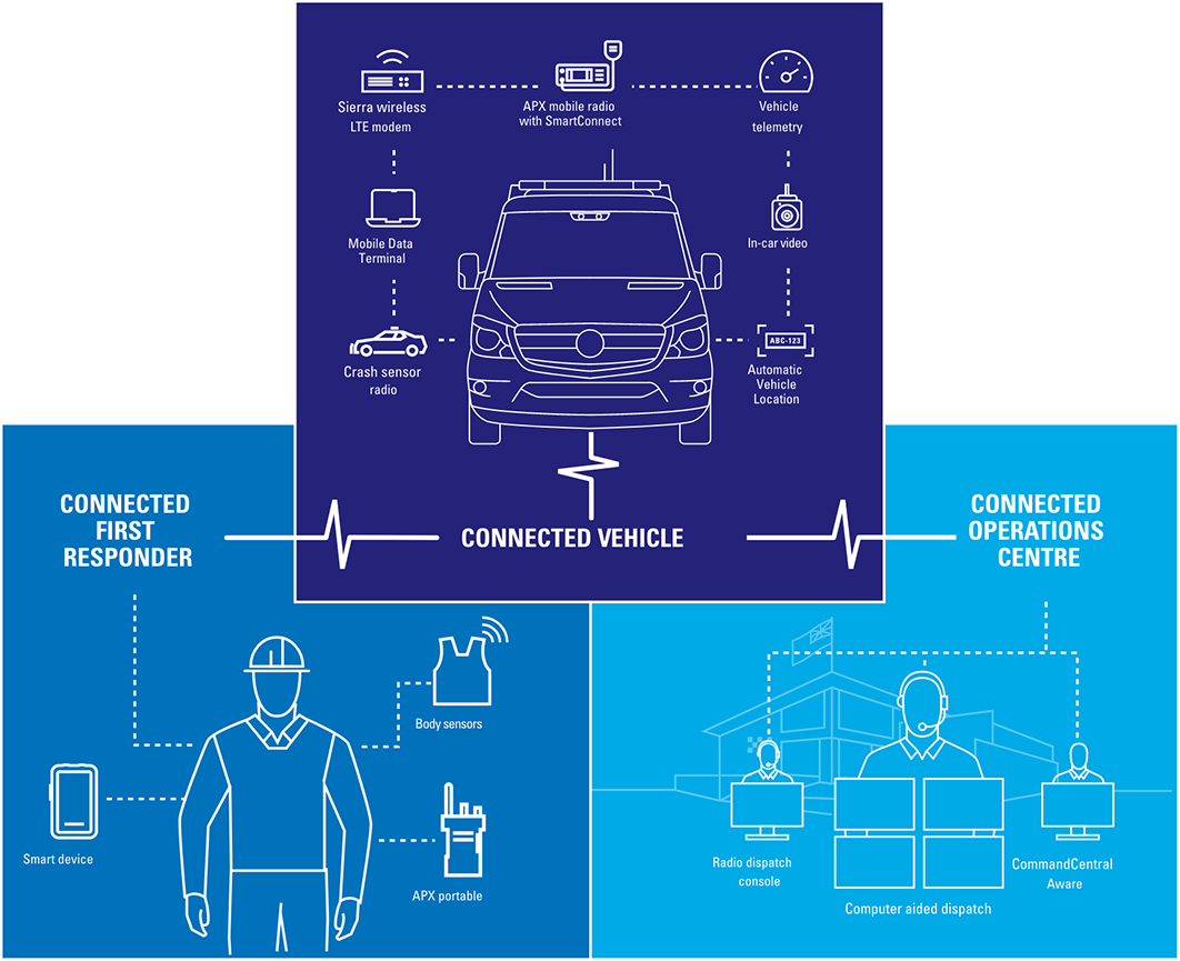 In rapidly developing situations, time is critical. The Connected Vehicle automatically locates and establishes the strongest line of voice communication, ensuring you receive vital up to the minute data, allowing you to respond swiftly, and without delay.
