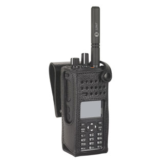 Carrying cases are available in sizes designed to fit your radio and battery and permit audio to be heard clearly. This hard leather case with 2.5-inch swivel belt loop is designed to work with the XPR 7550 display radio. Swivel model cases secure to a belt loop and allow the case to swing freely from side to side. The swivel latch system also allows the radio and case to be removed from the belt loop by simply inverting the case and lifting it up and out of the belt loop.