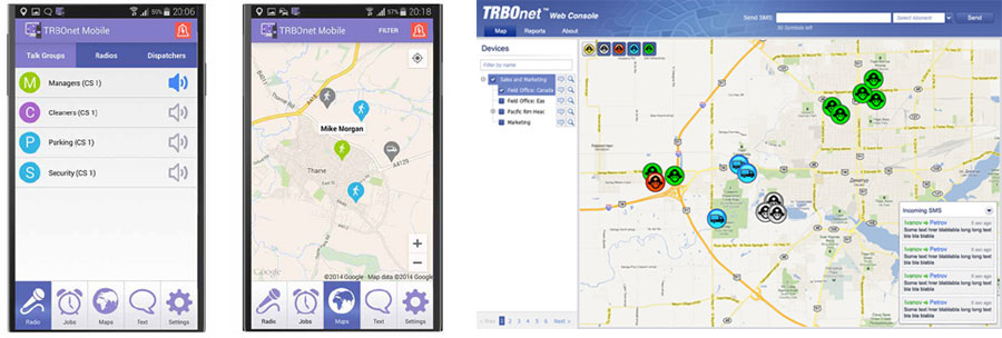 TRBOnet’s Mobile Client emulates regular console and delivers the most important dispatch information to the user’s Android-based device. It helps to exchange voice and data with 2-way radios, Android devices and Dispatchers via Wi-Fi or Cellular Data network. The solution also enables personnel and vehicle location tracking on the mobile device as well as the Emergency calls.