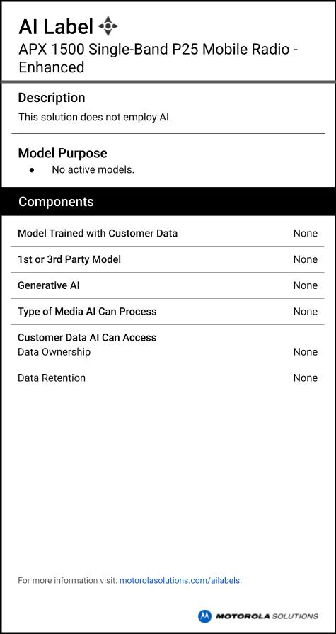 AI labels provide information on if and how APX 1500 leverages artificial intelligence. Learn more