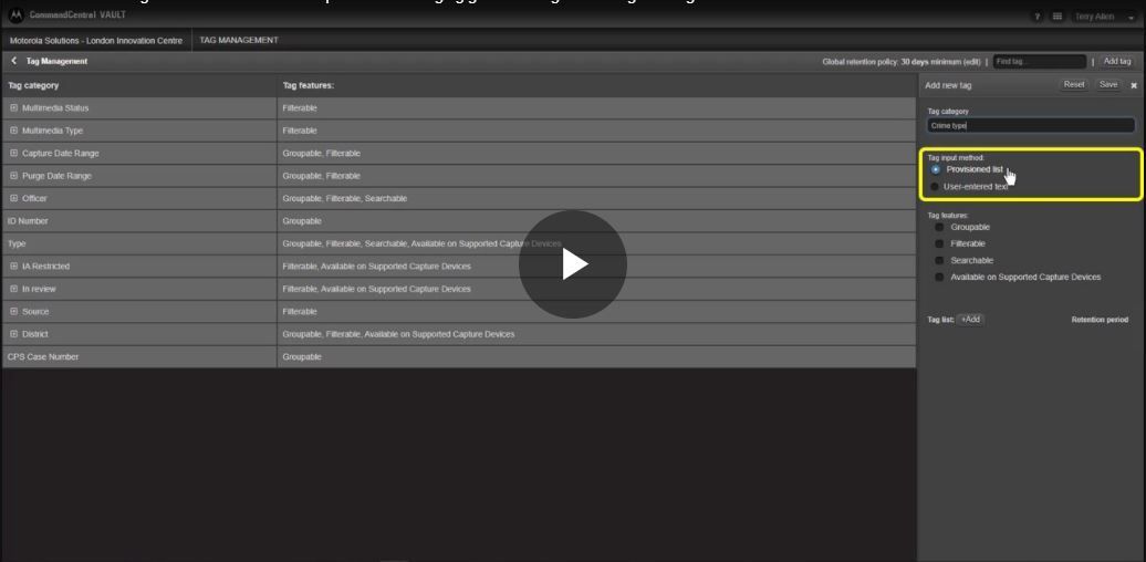 CCVAULT - TAGGING AND RETENTION PERIODS