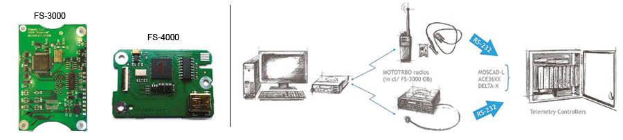 FS-3000 and FS-4000 option boards are extremely simple solutions for data transfer over RS-232. A typical application has proved to be the ability to connect older RTUs to newer MOTOTRBO radios to facilitate migration to digital and protect investment.