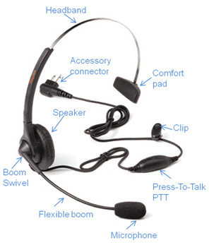 Light-weight headsets are usually worn over the top of the head. With the earpiece close to the ear providing discrete received audio, they prevent others from overhearing or from being disturbed by messages.