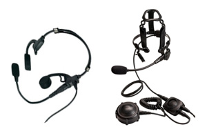 Headsets provide a speaker ear-muff on a headband with a pad to keep the headset securely in position and to enhance comfort. Dual-muff models are also available that provide a speaker and muff for each ear.