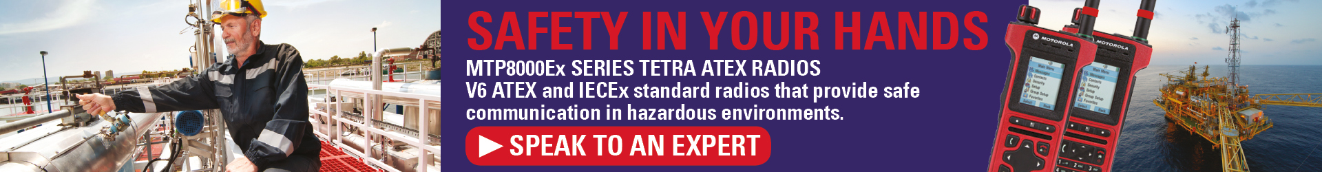 Meeting the latest ATEX and IECEx standard, the MTP8000Ex TETRA ATEX radios have been specifically designed for end-users who work in areas with potentially explosive gases or chemical vapours, flammable liquids or combustible dust.