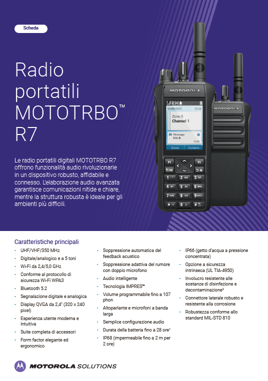 Scheda tecnica soluzioni contactless RFID e NFC MOTOTRBO R7