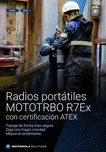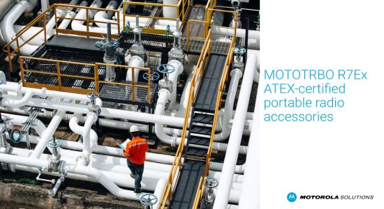 The intrinsically safe MOTOTRBO R7Ex two-way radio is ATEX and IECEx certified for use in hazardous environments. It is dust-tight and waterproof to withstand tough environments, and delivers loud, clear audio to help reduce downtime through enhanced worker safety and productivity.