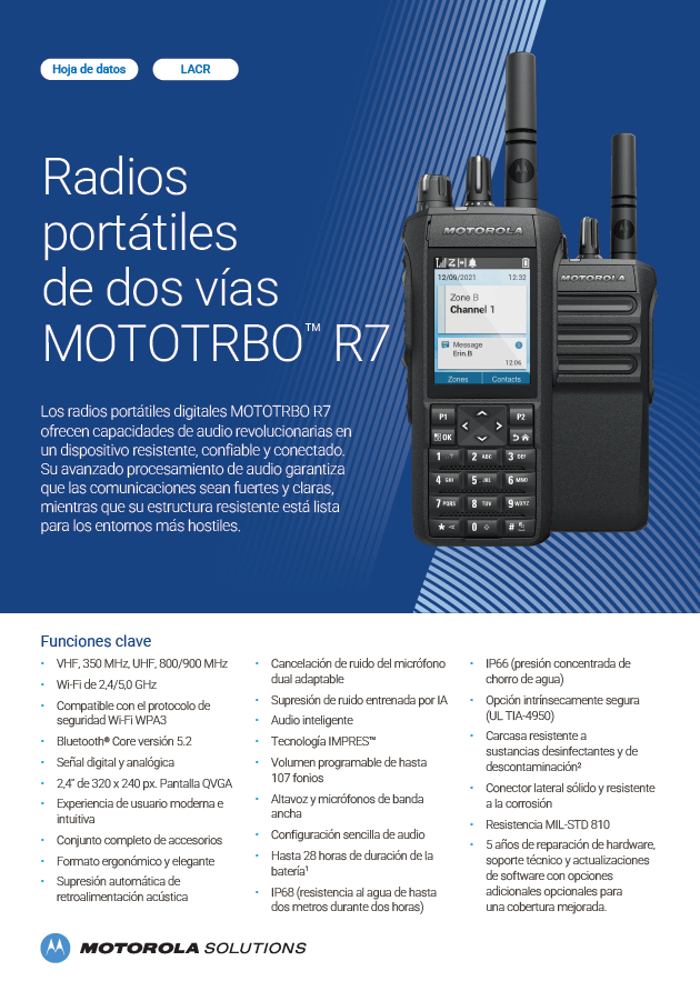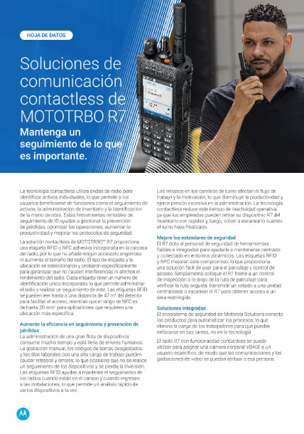 Hojas de datos de las solutiones RFID y NFC de MOTOTRBO R7