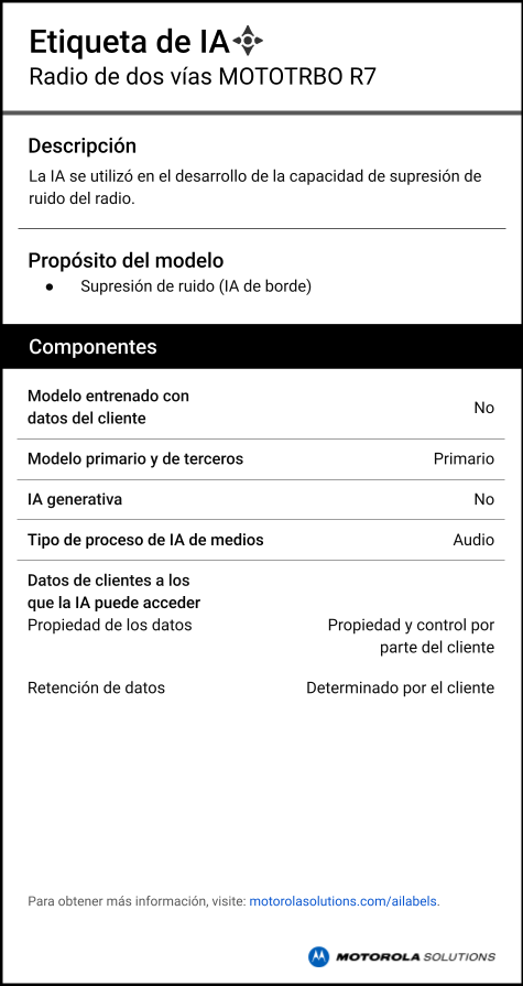 Especificaciones de las soluciones contactless del MOTOTRBO R7