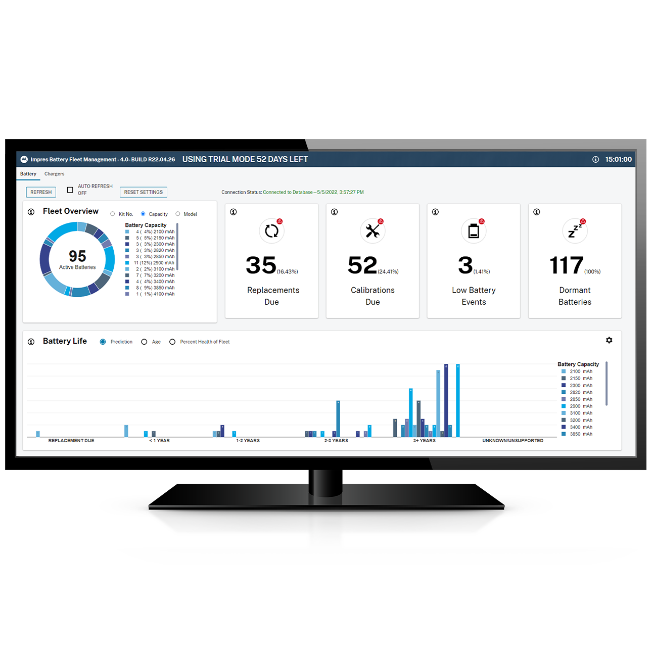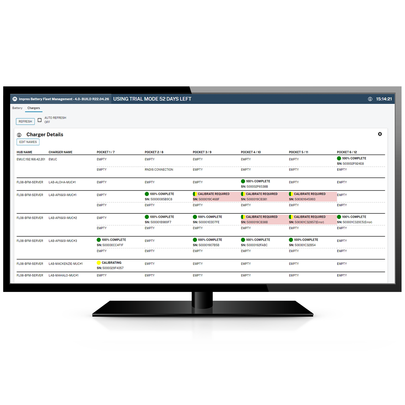 Con una interfaz de usuario rediseñada, el software de gestión de flotas de baterías IMPRES le permite gestionar de forma eficaz y eficiente su flota de baterías y ahorrar en costos operativos y de baterías a lo largo del tiempo.