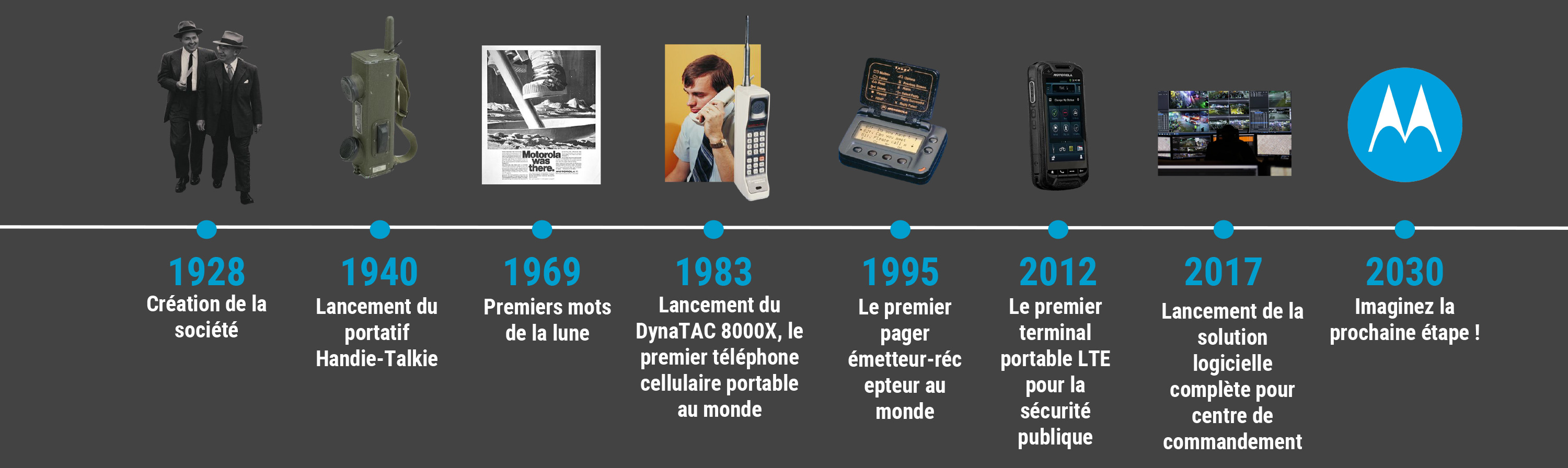 Qui n'aurait pu imaginer que la compagnie d'autoradios fondée par Paul Galvin en 1928 deviendrait un jour le principal fournisseur de solutions de communications critiques et de vidéosurveillance pour la sécurité publique et les entreprises dans tous les secteurs d'activité. Et dans un contexte économique très dynamique, 90 ans est une date anniversaire que peu d'entreprises ont été capables d'atteindre. Les équipes de Motorola Solutions sont honorées de partager ce moment exceptionnel avec nos clients et partenaires à travers le monde.