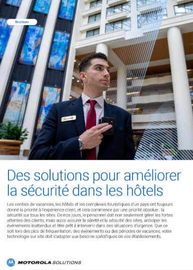 Nous contribuons à améliorer la sécurité dans le secteur du tourisme en concevant les meilleures technologies pour chaque composante de notre écosystème de sûreté et de sécurité afin qu'il puisse vous aider à protéger vos clients, vos personnels et vos établissements. Il est constitué d’appareils et de réseaux de communication, de systèmes de sécurité vidéo et d’une capacité de regrouper la voix, la vidéo et les données dans une seule interface.