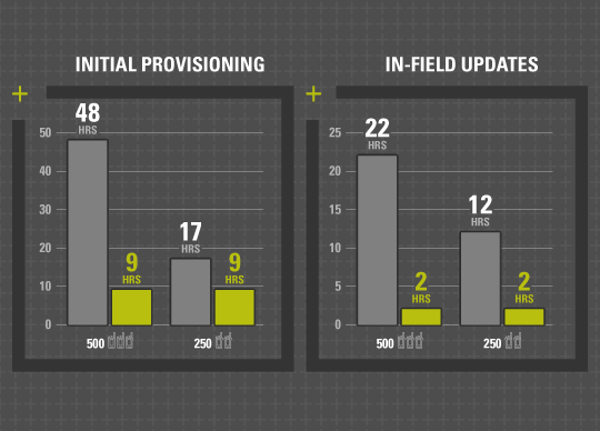 פרוס את מכשירי הקשר שלך מהר יותר והפעל אותם בשטח במשך זמן רב יותר, באמצעות הגדרות בענן ועדכונים מרחוק.