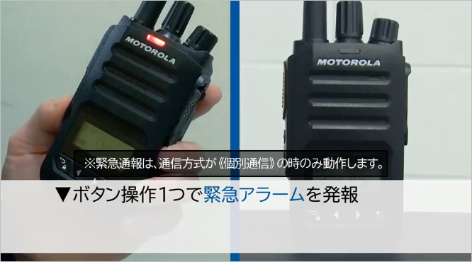 危険な場所で一人で作業する際には、無線での定期的な報告が必須となりますが、一定時間発話がない場合に自動で緊急通報を行うローンワーカー機能を搭載しています。