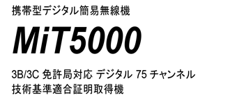 | 送受信周波数 | デジタル簡易無線登録局(6.25kHz間隔、全75波) 465.096875~465.153125MHz(10波)、467.000000~467.400000Mhz(65波) |