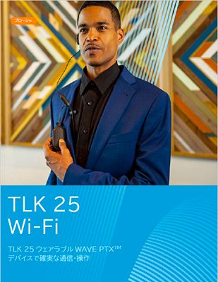 TLK 25 では、Wi-Fi 専用デバイスとして、サイト間の通信範囲が制限されません。追加のインフラストラクチャも不要で、WAVE PTX バックエンドにより、Wi-Fi 帯域幅の消費も減ります。TLK 25 を個人または企業の既存の Wi-Fi ネットワークに簡単に接続し、サイト全体で高品質で信頼性の高い通信アクセスを開始できます。既存の LMR および LTE デバイスと相互運用し、効果的で信頼性の高い混在環境を実現します。