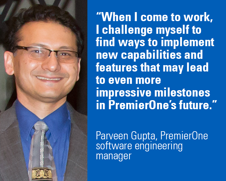 “I sleep well at night knowing that the software I create helps our customers when it matters most, but I’m always thinking of how to make the solution quicker, better and more resilient,” said Parveen Gupta, PremierOne software engineering manager. “When I come to work, I challenge myself to find ways to implement new capabilities and features that may lead to even more impressive milestones in PremierOne’s future.”