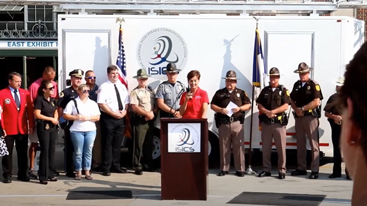 On August 13, 2018 at the Iowa State Fair, the ceremonial first call was made on the new Iowa Statewide Interoperable Communications System (ISICS) by Governor Kim Reynolds.