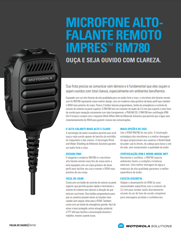 Notavelmente pequeno e elegante, é um rádio portátil fácil de transportar, suficientemente resistente para utilização o dia todo em ambientes difíceis. Controles grandes, botões programáveis, visor altamente nítido, teclado grande e controle por voz básico ViQi facilitam o uso em qualquer lugar. É um rádio que otimiza a velocidade e o espaço.