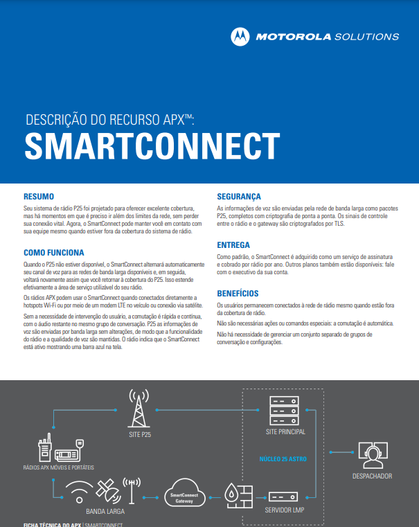 Vários algoritmos de criptografia de hardware, incluindo AES-256, ferramentas de programação de rádio em lote para atualizações mais fáceis e eficientes e um portfólio de serviços de software com suporte técnico mantêm a segurança das comunicações e atualização das funções nos dispositivos.