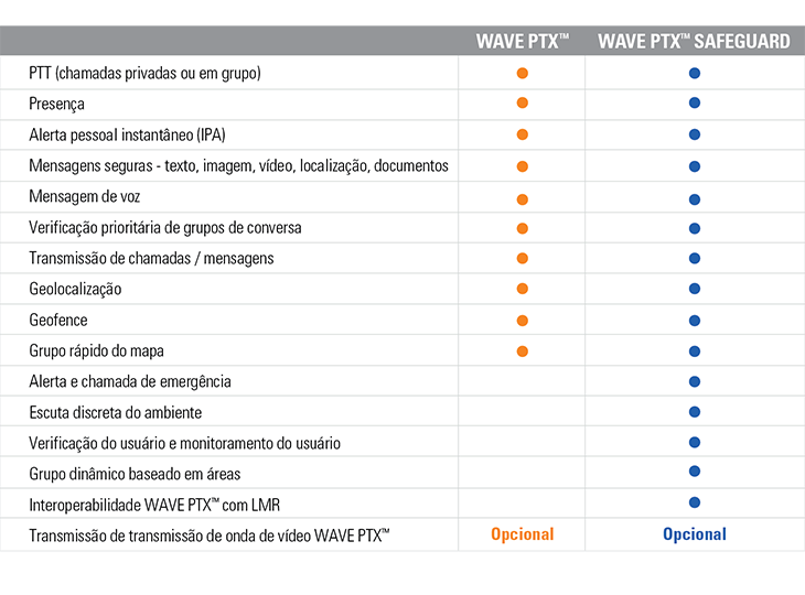 Complete sua solução para gerenciar operações. Selecione entre licença básica WAVE PTX™ ou adicione funções com licença plus WAVE PTX™ SAFEGUARD especial para emergências.