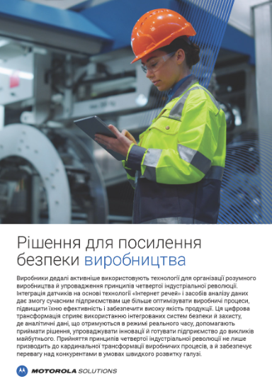 Від виробничої лінії до вантажної рампи, в офісі та за його межами — Motorola Solutions допомагає виробникам працювати ефективніше, продуктивніше й безпечніше за найскладніших умов.