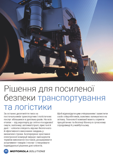 Ми допомагаємо зробити дистрибуцію та логістику безпечнішими, створюючи найкращі технології для кожного аспекту екосистеми охорони й безпеки, щоб захистити ваше робоче середовище, діяльність і персонал. Наша екосистема включає комунікаційні пристрої та мережі, системи відеоспостереження, а також можливість об’єднати в єдине ціле голос, відео й дані.